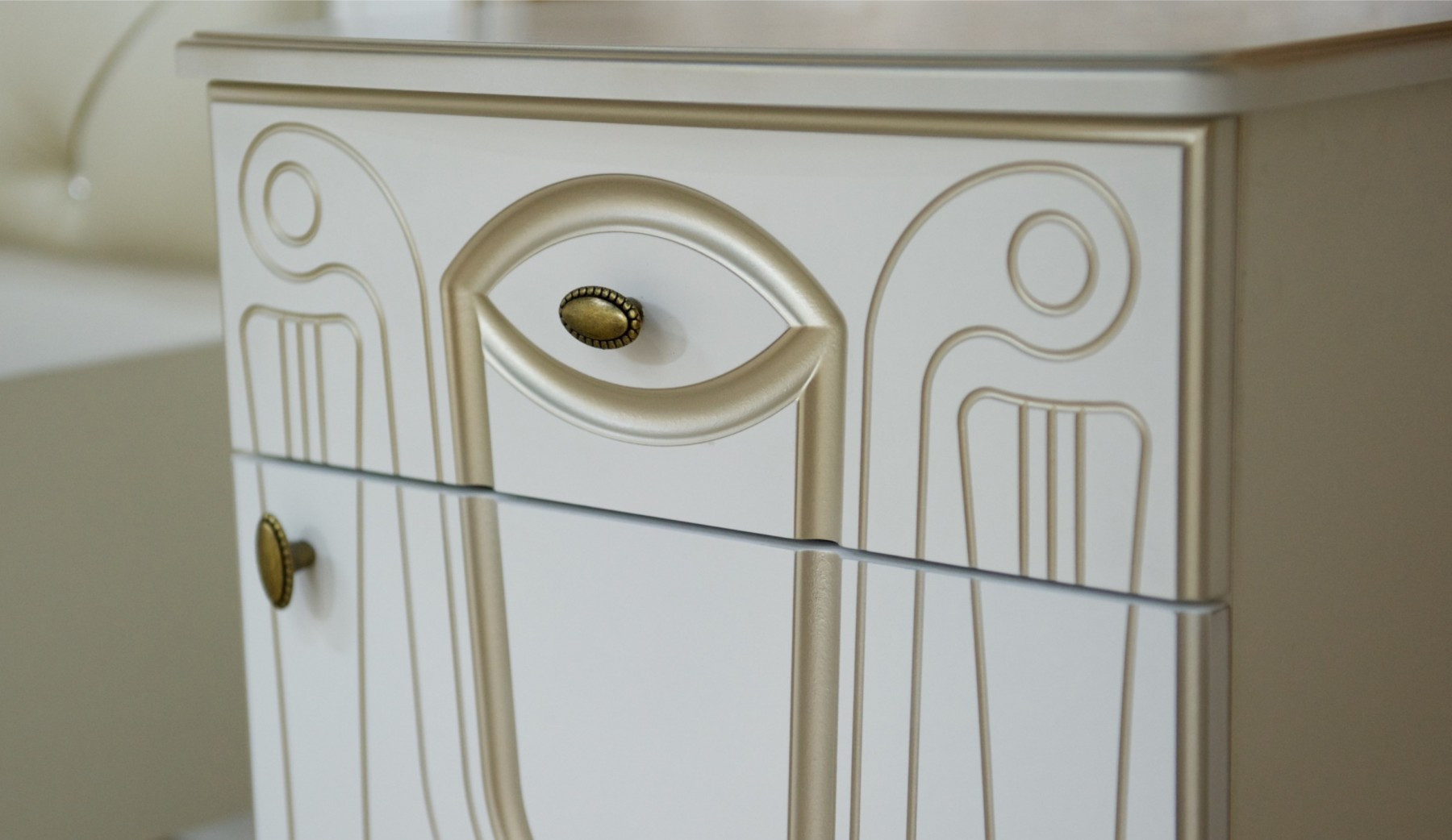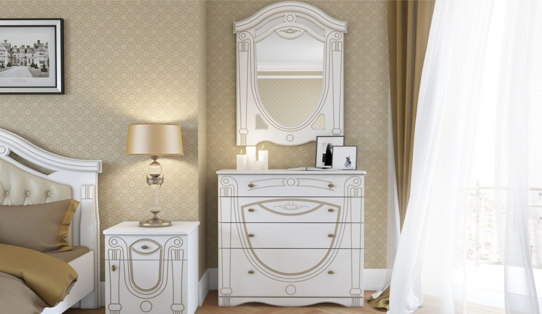 —Спальный Гарнитур Александрина Белый/Патина Золото