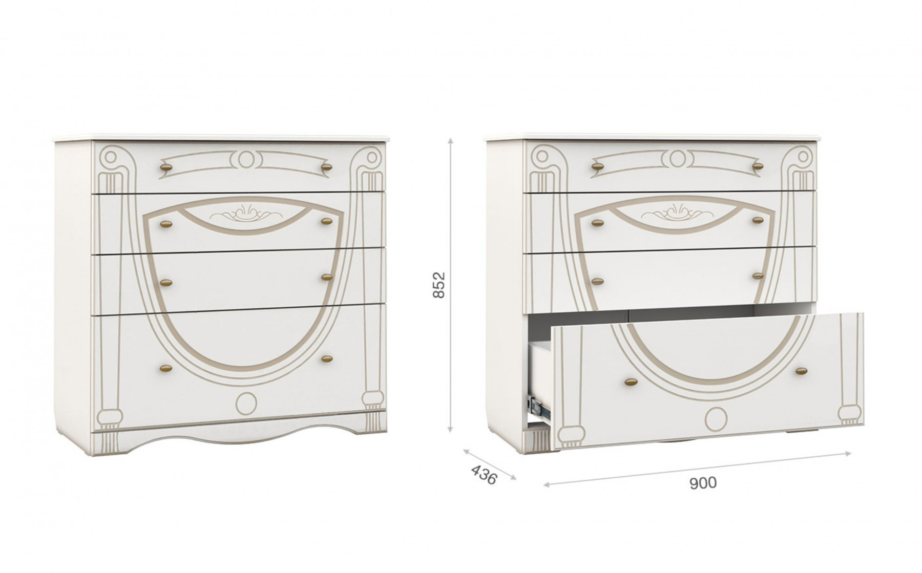 • Комод: Ширина 900 мм х Глубина 436 мм x Высота 852 мм