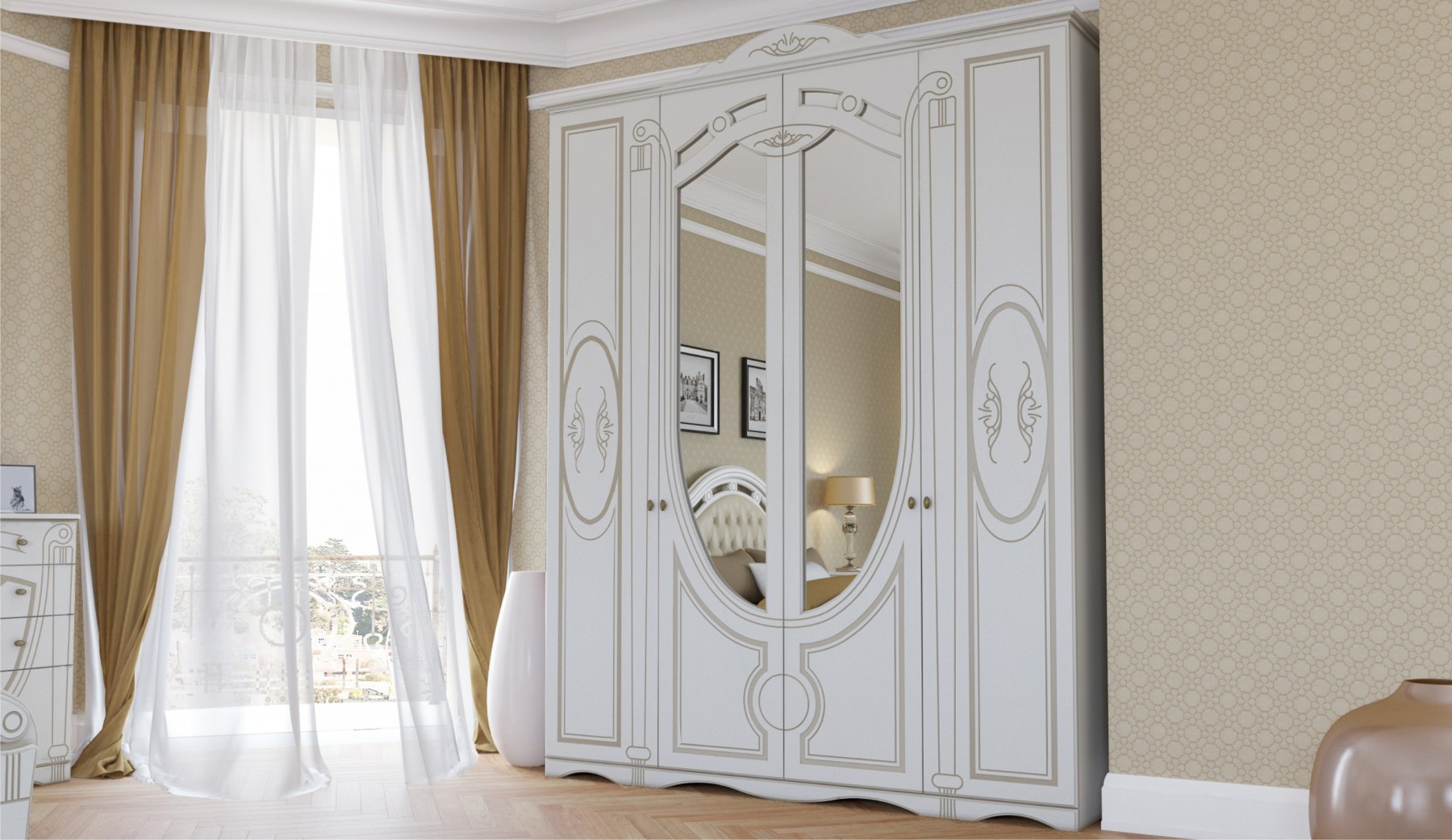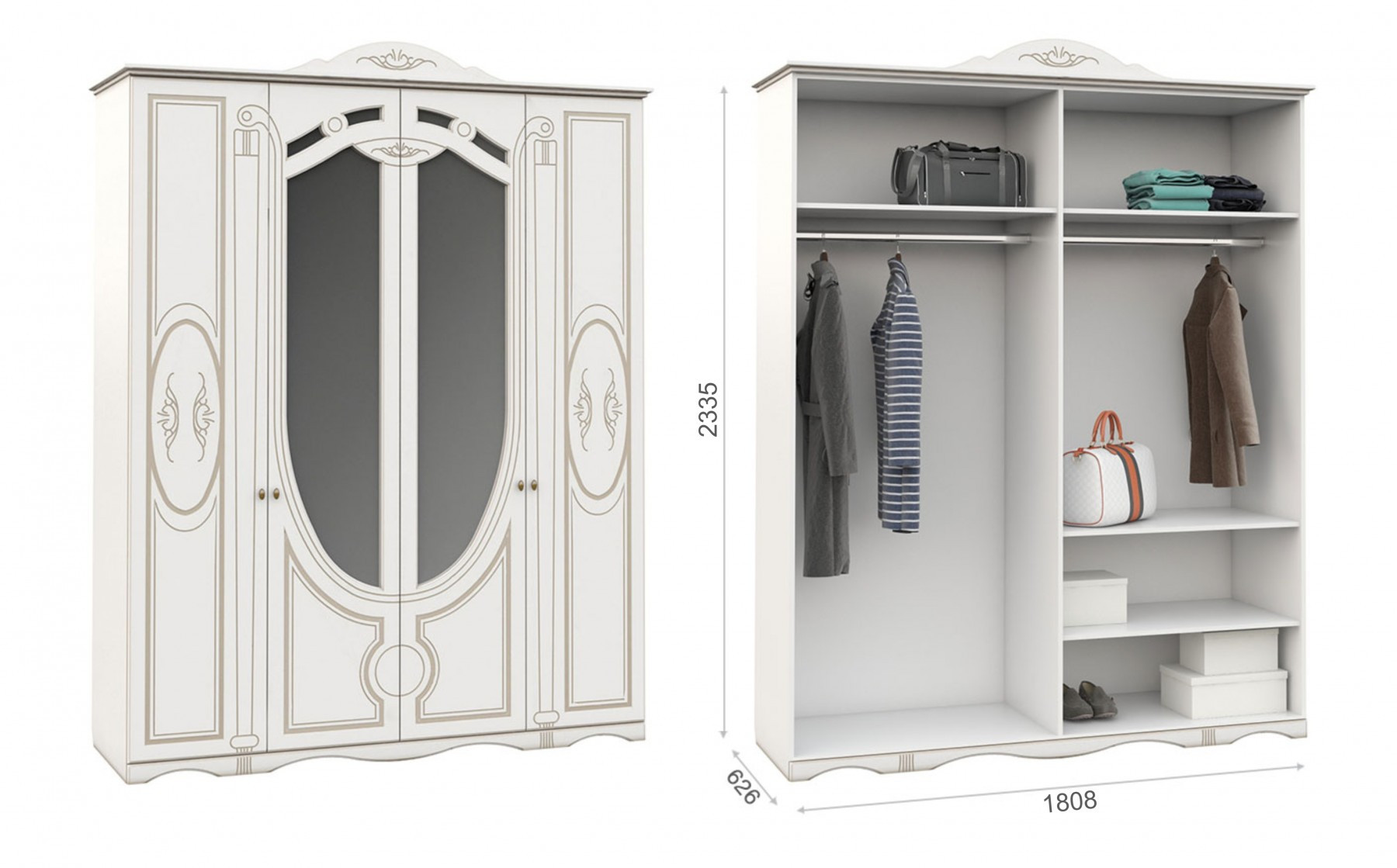 • Шкаф 4-х Створчатый: Ширина 1808 мм х Глубина 626 мм x Высота 2335 мм