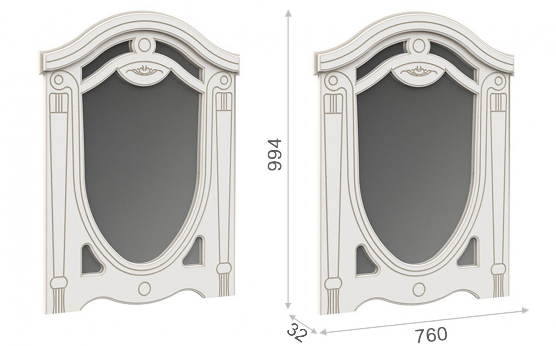 • Зеркало: Ширина 760 мм х Глубина 32 мм x Высота 994 мм